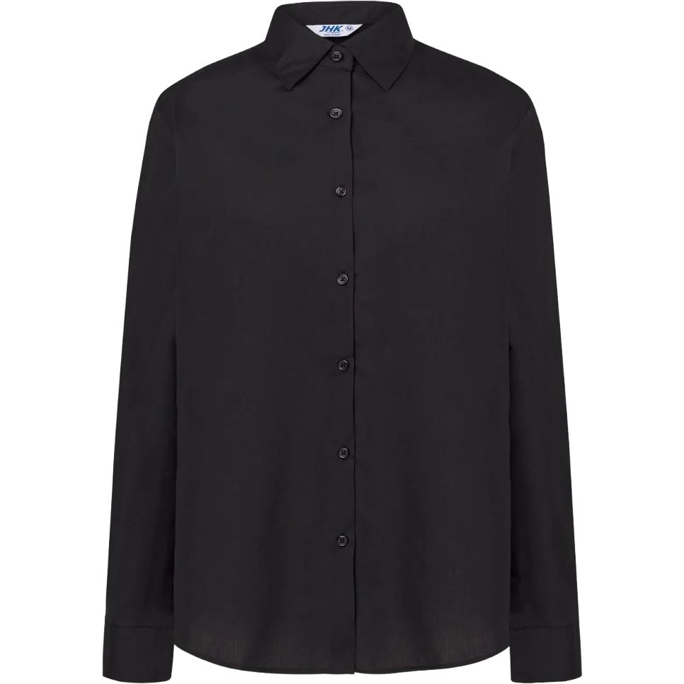 Chemise popeline à manches longues pour femme. Coupe légèrement ajustée. Boutons ton sur ton. Composition : 65% polyester, 35% coton.