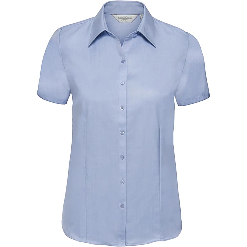 La Chemise à Chevrons Cintrée Manches Courtes Femme convient à un usage professionnel ou quotidien, avec col moderne, patte de boutonnage étroite et coupe ajustée. Composition : 84% coton, 16% polyester (mini chevron).