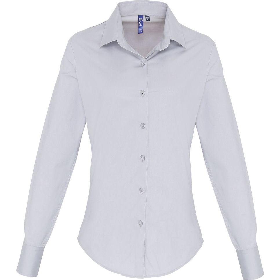 PR344 - Chemise en popeline Stretch manches longues pour femme - silver