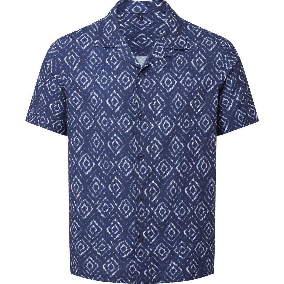 La chemise homme à manches courtes présente une coupe décontractée adaptée aux périodes estivales. Elle est conçue dans un tissu léger mêlant coton et viscose, avec un col cubain et une fermeture par boutons à l'avant. Cette chemise peut être portée seule ou associée à d'autres vêtements pour un ensemble adapté à la saison.