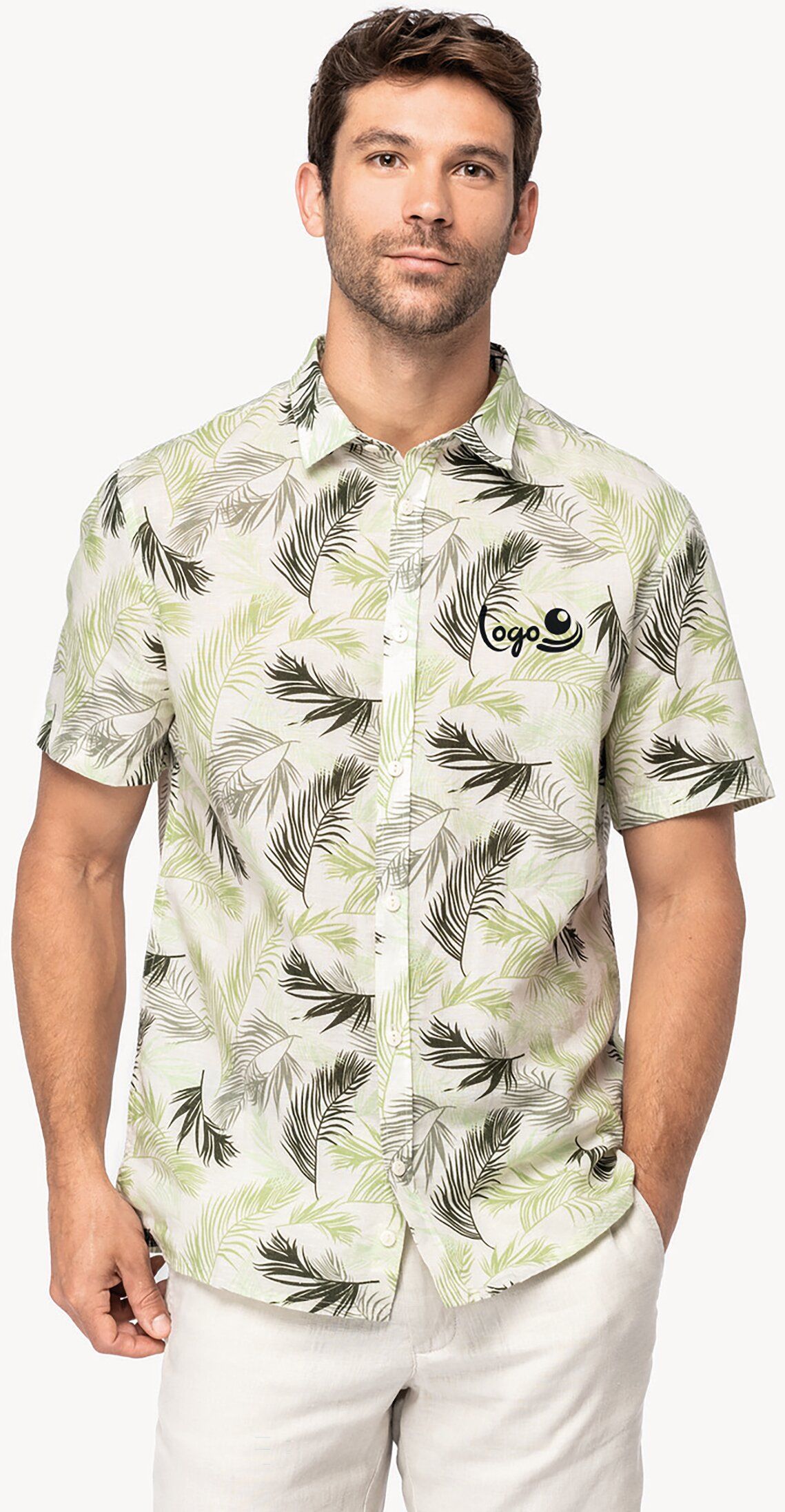 NS530 - Chemise imprimé côtier homme - ivory_palm_leaves