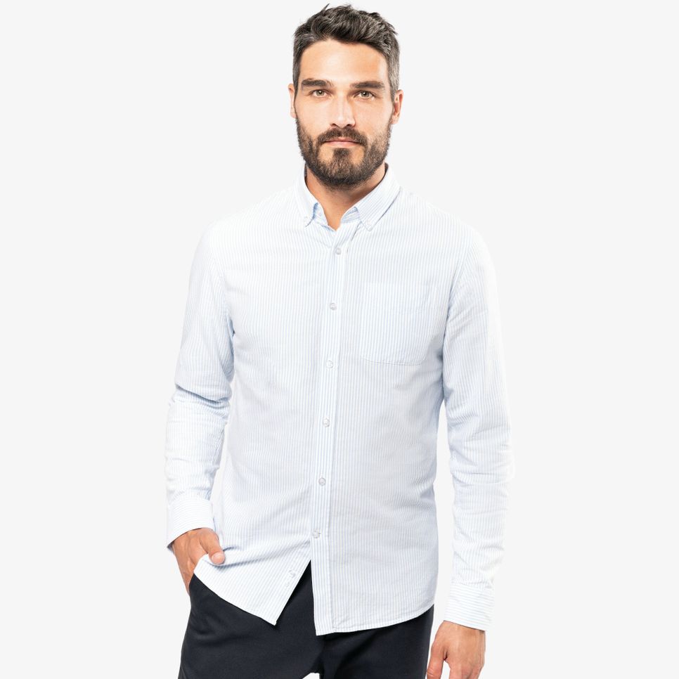 K516 - Chemise oxford lavée manches longues homme - striped_white/oxford_blue