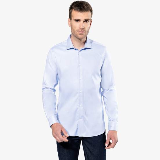 La chemise Oxford homme à manches longues en tissu Oxford pinpoint, avec traitement easy care, convient à un usage professionnel ou quotidien. Le col Italien intègre des baleines amovibles et la coupe ajustée est complétée par des pinces au dos et des poignets à 2 boutons. Une étiquette taille seule facilite la personnalisation.