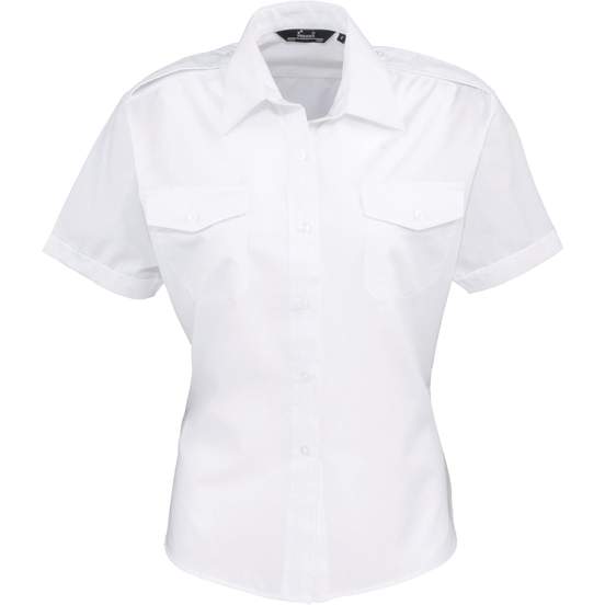 PR312 - Chemise pilote à manches courtespour femme - white