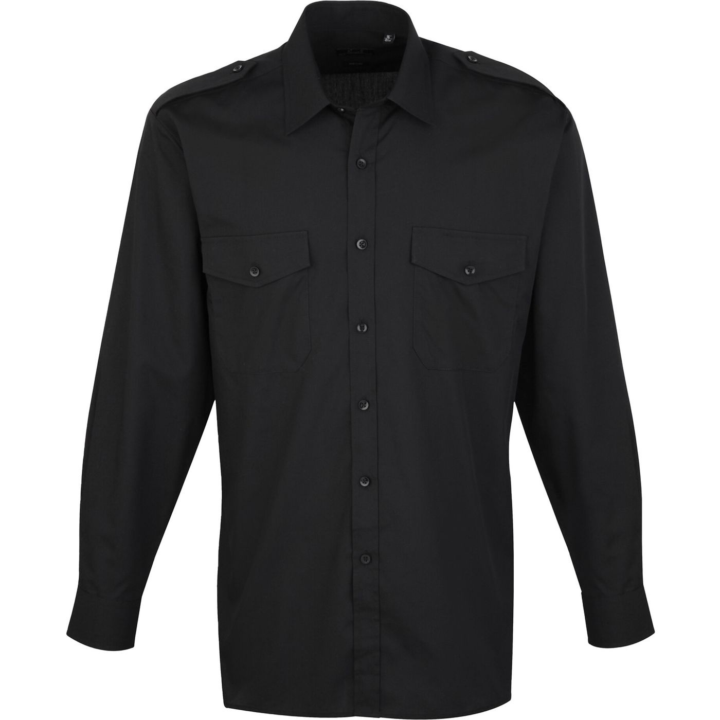Chemise pilote à manches longues pour homme. (Epaulettes PW715 non incluses). Col renforcé. 2 poches-poitrine à rabats. Poche stylo combinée sur la poche poitrine gauche. Manches longues avec poignets boutonnés. Repassage facile. Comporte des languettes sur les épaules pour y fixer des épaulettes. Composition : 65% polyester, 35% coton.