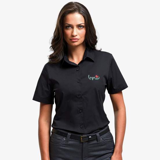 Chemises personnalisées - PR346 - Chemise poepline stretch en coton manches courtes pour femme
