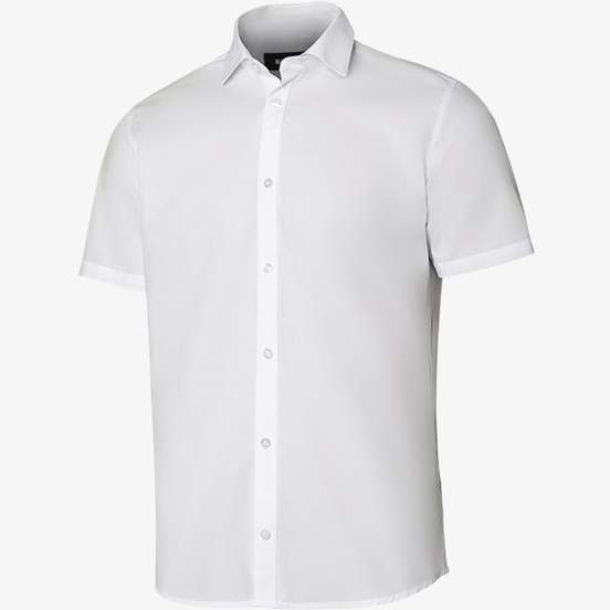 La chemisette homme à fermeture boutonnée avec rabat et col italien avec baleines, avec empiècement dans le dos. Convient aux usages professionnels et aux tenues coordonnées, avec option personnalisable.