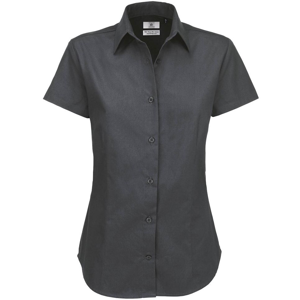 La Chemisette Sharp Femme est une chemise en coton peigné sergé avec traitement Easy Care, manches courtes et col féminin. La coupe ajustée s’appuie sur des pinces poitrine à l’avant et au dos. Fermeture par boutons nacrés, bord inférieur arrondi et bouton de rechange.