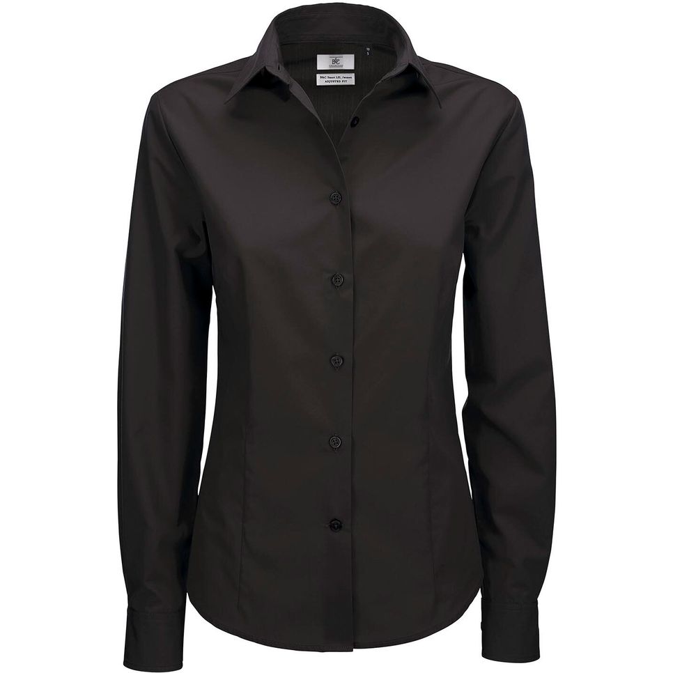 65% polyester/35% coton. 115 g/m². Chemise manches longues en popeline polyester/coton traitée Easy Care pour une durabilité et un confort accrus. Col féminin. Poignets ajustables 2 boutons, boutonnières supplémentaires pour les boutons de manchette. Boutons nacrés assortis cousus en croix. Dernière boutonnière horizontale. Bord inférieur moderne et arrondi. 1 bouton de réserve. Pinces au niveau de la poitrine, sur le devant et sur l'arrière pour une coupe ajustée