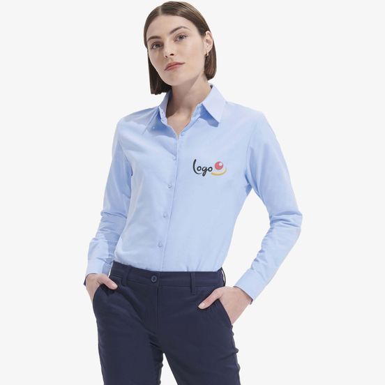La chemise femme oxford Embassy à manches longues convient à un usage professionnel ou quotidien. Col classique, pinces poitrine et poignets ajustables arrondis à 2 boutons. Personnalisable.