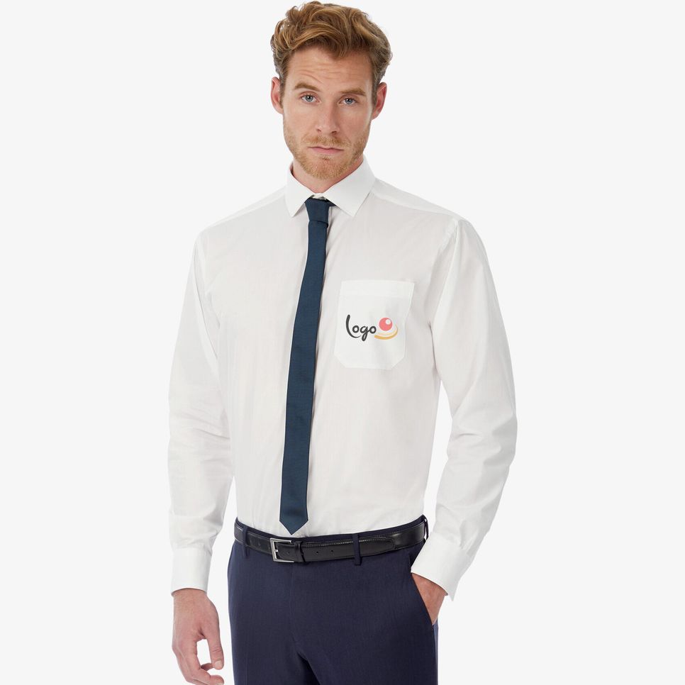 La chemise Heritage lsl men à manches longues en coton peigné convient à un usage professionnel, avec col italien semi-ouvert, poche poitrine et base arrondie. Détails fonctionnels : fixation cravate, patte de manche et boutonnière horizontale.