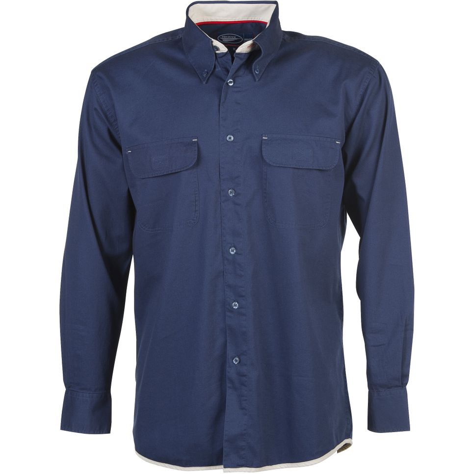 La chemise Jones en coton twill convient à un usage quotidien. Manches longues, deux poches poitrine personnalisables avec surpiqûres contrastées, intérieur de col contrasté et passepoil bas contrasté.