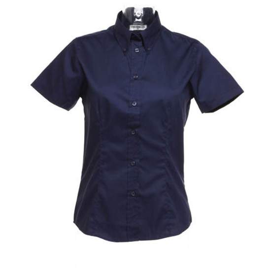 La chemise Oxford Blouse Femme à manches courtes, avec coupe cintrée, col avec bouton et ourlet arrondi. Empiècement au dos. Convient à un usage professionnel et peut être personnalisée.