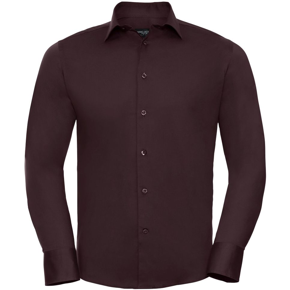 R-946M-0 - Men’s long sleeve fitted stretch shirt - chocolate