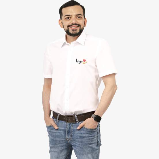 La chemise Chemise body fit pour homme à manches courtes, coupe ajustée, avec col Kent et sans poche poitrine. Finition sans repassage pour un usage quotidien. Personnalisable.