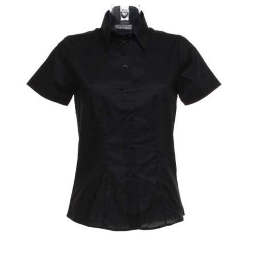 Le chemisier Promotional Oxford Blouse à manches courtes convient à un usage professionnel. Col classique boutonné, empiècement dos, pinces devant et dos pour une coupe cintrée, base arrondie. Personnalisable.