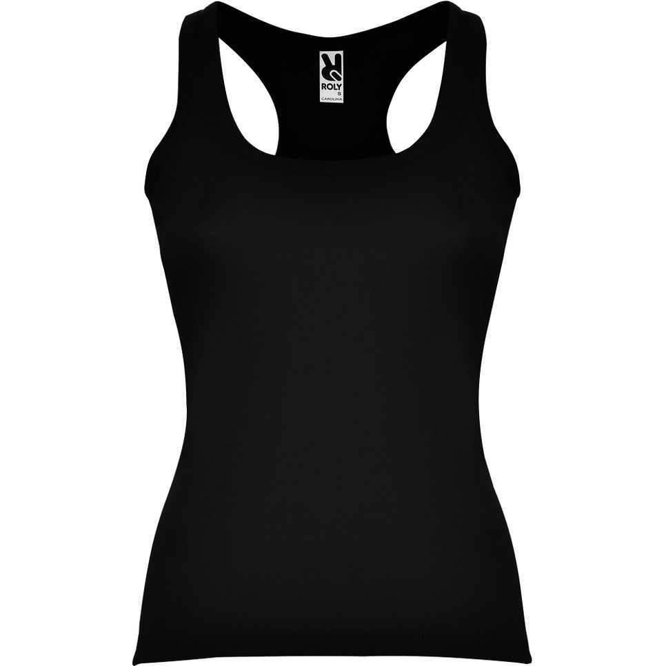 Le débardeur Carolina en coton, en maille côte 1x1, avec coupe près du corps et dos nageur. Encolure et emmanchures avec revers, coutures latérales. Convient à la personnalisation.
