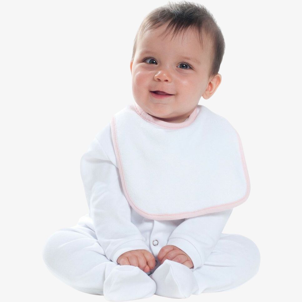 Le bavoir bébé permet de limiter les taches sur les vêtements lors des repas. La fermeture par bande auto-agrippante facilite la mise en place et le retrait. Les finitions biais jersey contrasté bordent le pourtour. Personnalisation possible.