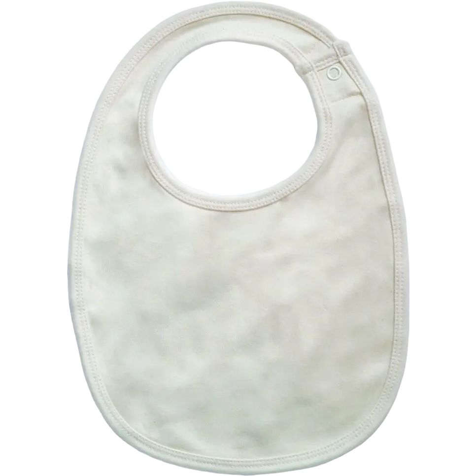 Le bavoir Single Layer bib en coton organique, non doublé, avec fermeture par bouton pression au dos et biais au col, convient à un usage quotidien et à la personnalisation.
