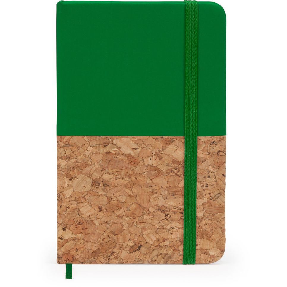 Le bloc-notes A6 Iris avec couverture rigide en liège et similicuir convient à la prise de notes au quotidien. Son marque-page élastique facilite le repérage, et son format compact se glisse facilement dans un sac. Produit personnalisable.
