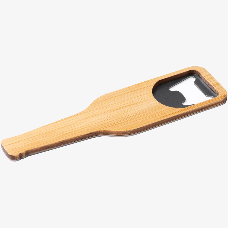 Le décapsuleur Pilsen en forme de bouteille associe bambou et métal avec un aimant pour le garder à portée de main sur une surface métallique. Utilisation simple pour l’ouverture de capsules. Personnalisation possible pour identifier un usage ou un événement.