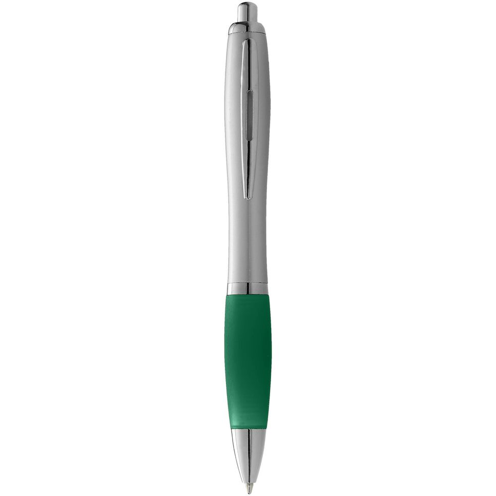 106355 - Stylo bille avec corps argenté et grip coloré Nash - argent/vert