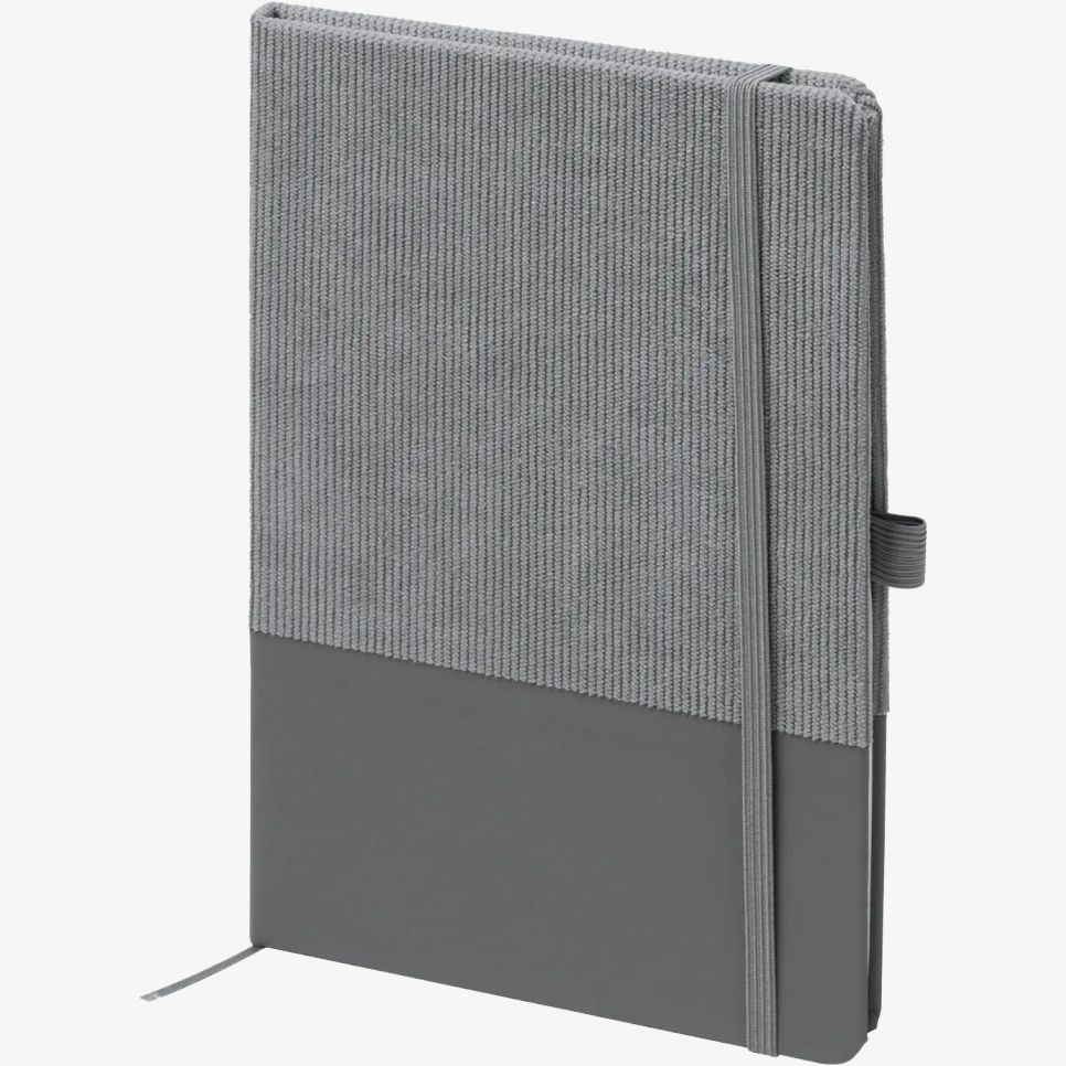 Le bloc-notes A5 Suly en velours côtelé et cuir PU comprend 80 feuilles de papier ligné, adapté à la prise de notes au bureau ou en déplacement. Dimensions : 14,5 x 21 x 1,3 cm. Composition : cuir PU.