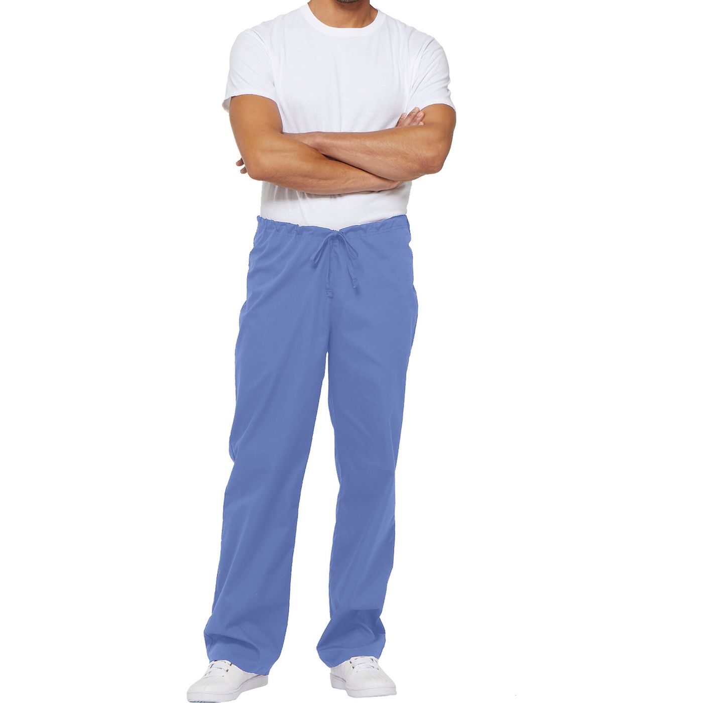 Pantalon de travail unisexe. Coupe unisexe avec cordon de serrage. Poche arrière avec poche intérieure en tricot bleu (tricot blanc pour le white). Composition : 55% coton, 45% polyester.