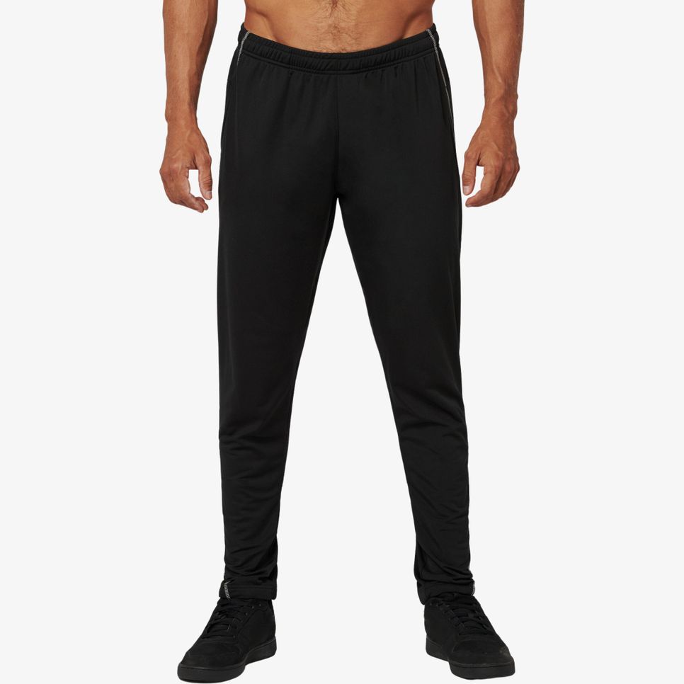 100% polyester polytricot gratté. 1 poche côté droit. Ceinture élastiquée avec cordon de serrage. Bas de pantalon zippé avec empiècement ajusté aux mollets. Bande antidérapante au bas de jambe. Points de recouvrement contrastés.