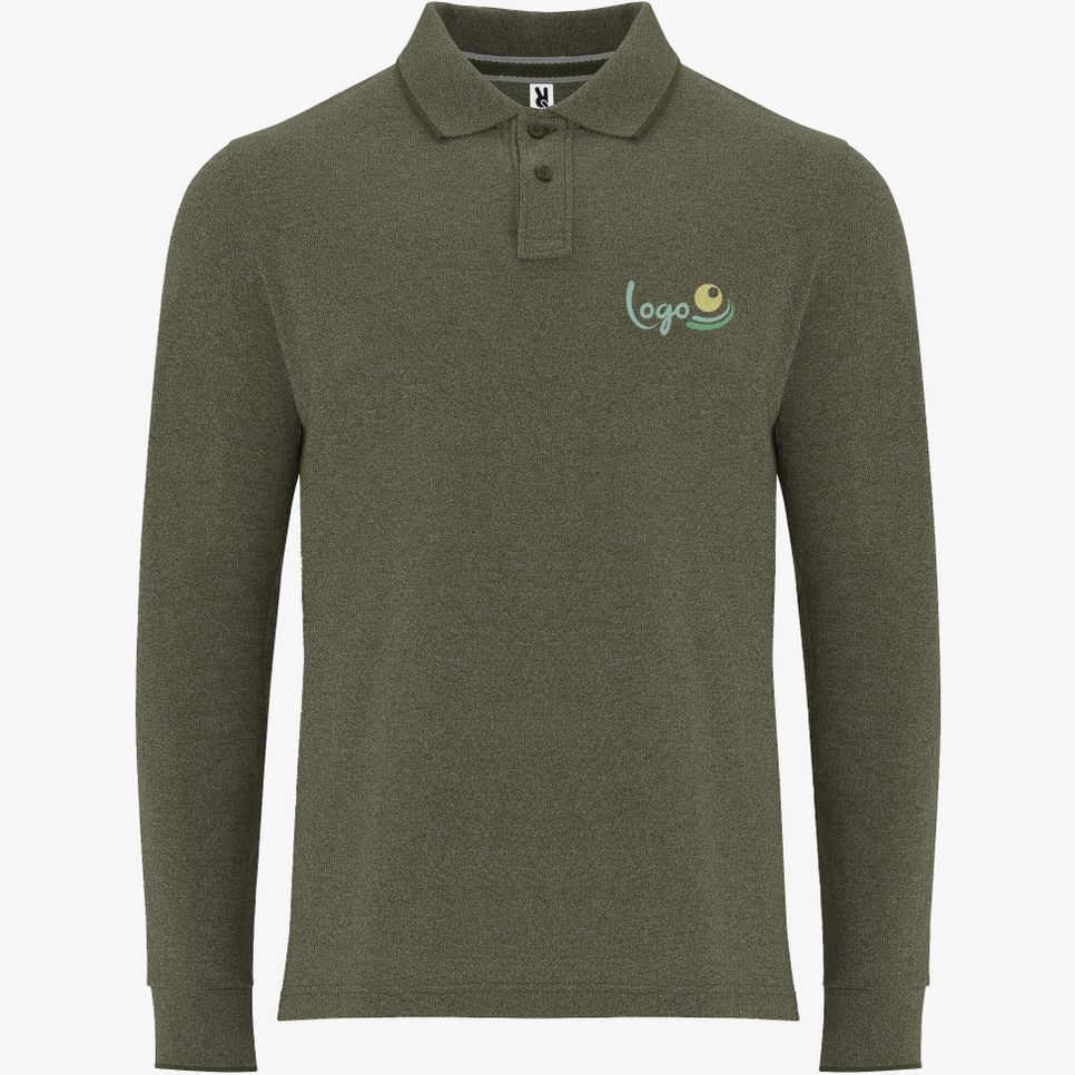 Polo chiné manches longues, avec patte de boutonnage superposée 2 boutons ton sur ton. Col et poignets en couleur unie. Bande de propreté renforcée à l'intérieur du cou. Ouvertures latérales avec bande décorative contrastée. Empiècement du dos plus long que le devant. Étiquette détachable. Composition : 50% coton, 50% polyester, maille piquée, 250 g/m².