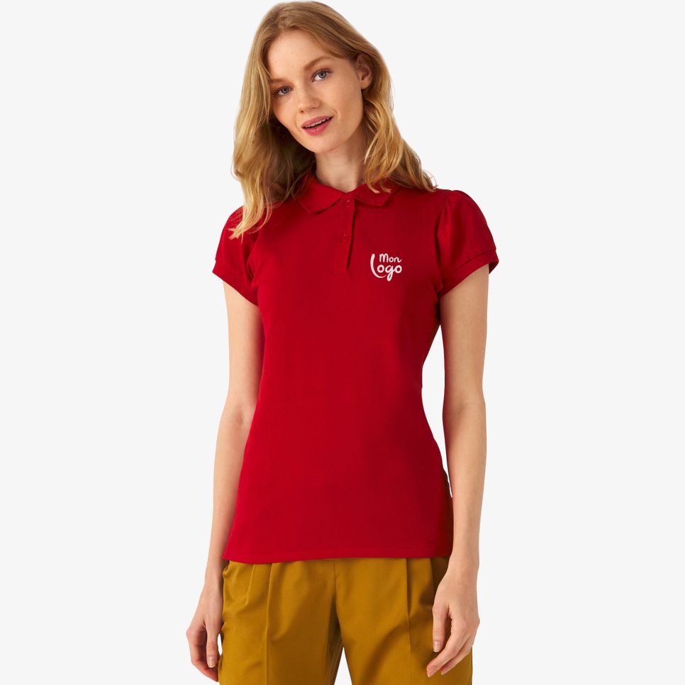 Le polo Heavymill Women est un modèle femme à manches courtes en maille piquée, avec col en côte 1x1, ouvertures latérales et double patte à 2 boutons ton sur ton. Personnalisable.