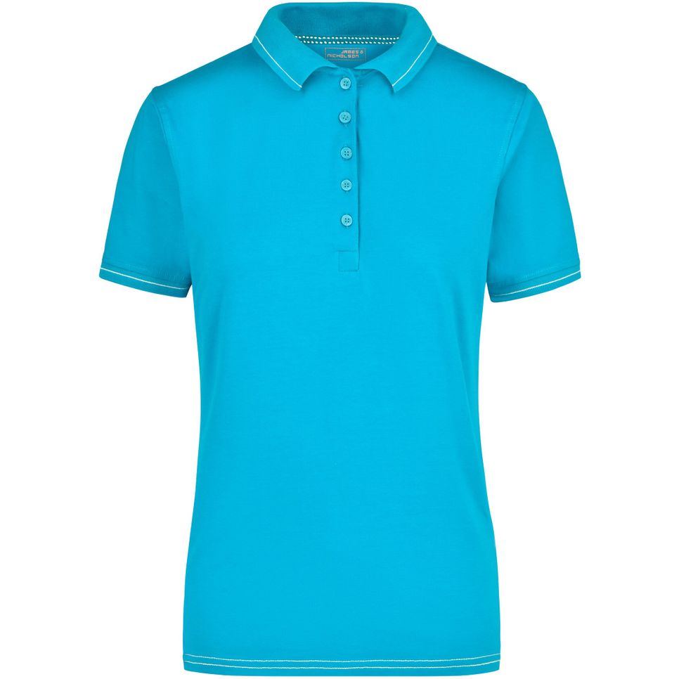 JN568 - Ladies' Elastic Polo - aqua/white