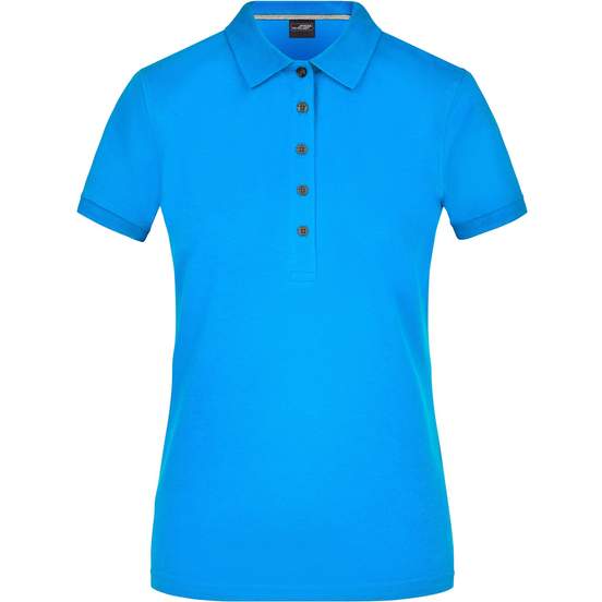 Le Ladies pima polo est un polo femme à coupe cintrée en tissu piqué, conçu pour un port quotidien. Col et poignets en tricot, fermeture à 5 boutons couleur titane. Modèle personnalisable.