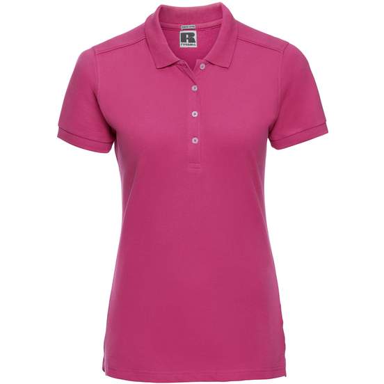 Le Ladies Stretch polo est un polo femme en maille piquée, avec plaquette 4 boutons nacrés, coupe ajustée et fentes latérales. Toucher doux et passepoil ton sur ton aux épaules. Adapté à un usage quotidien et à la personnalisation.