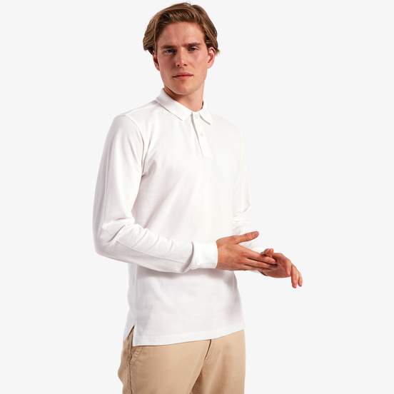 Le polo manches longues pour homme en coton peigné ringspun convient à un usage quotidien. Poignets et col tricot, patte de boutonnage à deux boutons et fentes latérales. Convient à la personnalisation.