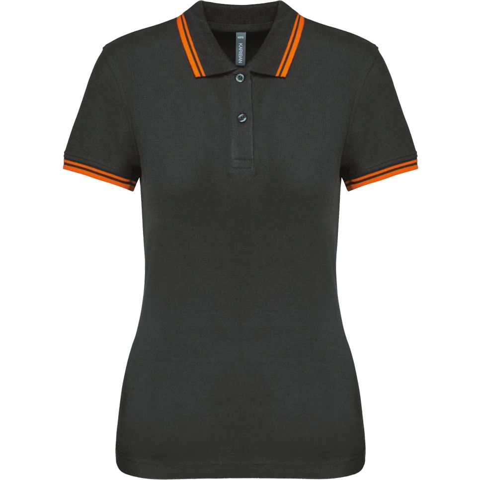 K273 - Polo femme manches courtes à liserés contrastés - dark_grey/orange