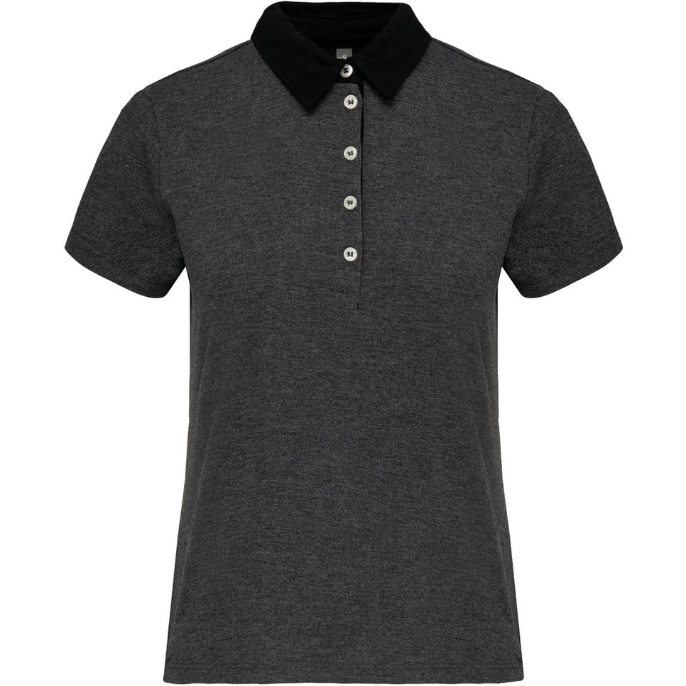 K261 - Polo jersey bicolore femme - dark_grey_heather/black