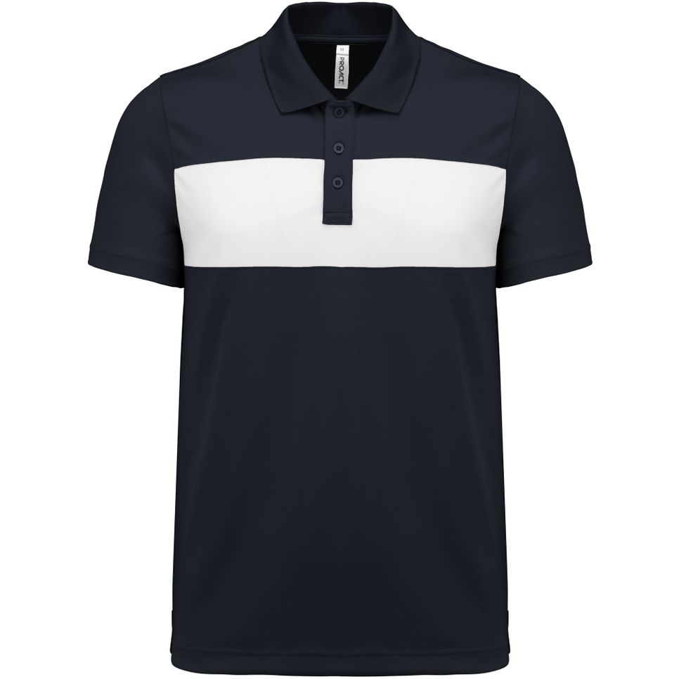 100% polyester. Maille interlock. Tissu à séchage rapide. Empiècement poitrine contrasté. Col en bord-côte avec bande de propreté. Patte 3 boutons ton sur ton. Fentes latérales. Finition double aiguille bas de manches et de vêtement.