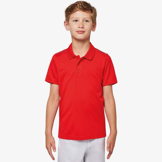 Le Polo Enfant Manches est un polo enfant en polyester interlock à séchage rapide, avec col bord-côte et patte de boutonnage 3 boutons. Détails contrastés au col, aux fentes latérales et aux épaules, avec finitions double aiguille.