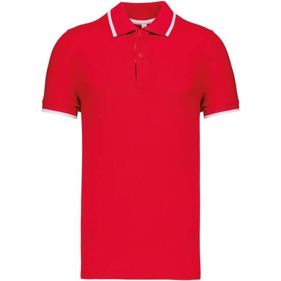 Le polo homme manches en coton piqué peigné convient à un usage quotidien. Col bord-côte avec liseré contrasté selon coloris (sans contraste sous le col en White), bande de propreté contrastée, patte 2 boutons.