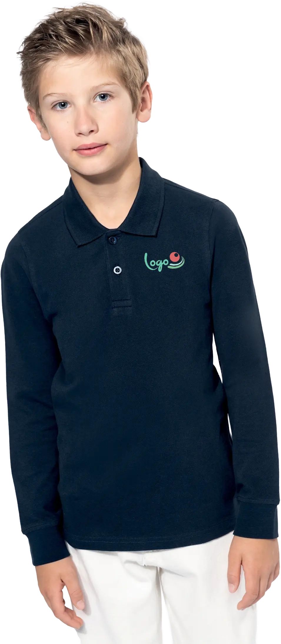 Polo à manche longue pour enfant, en coton peigné. Coupe ajustée. Maille piquée pré-rétréci. Patte de boutonnage 2 boutons ton sur ton. Bande propreté en tissu principal ton sur ton. Col en bord-côte 1x1. Bas de manches en bord côte 1x1 double en finition tubulaire. Présence d'élasthanne dans le bord côte bas de manche pour éviter que le poignet se déforme. Finition bas de vêtement ourlet double surpiqûres. Pas d'étiquette de marque au col, uniquement une puce de taille pour faciliter la personnalisation. Composition : 99% coton, 1% élasthanne, (sauf coloris Oxford Grey : 90% coton et 10% viscose).