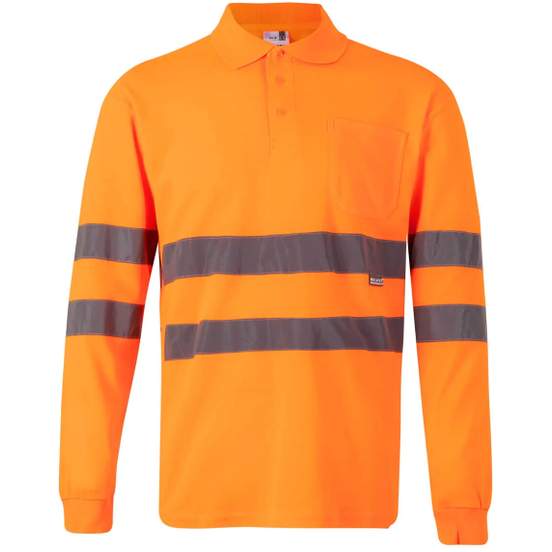 Le Polo Manches Longues Haute Visibilité Coton Polyester est un polo manches longues haute visibilité avec bandes réfléchissantes sur la poitrine et les manches, col et poignets bords côte, et poche poitrine. Composition : 55% coton, 45% polyester. Personnalisation possible.