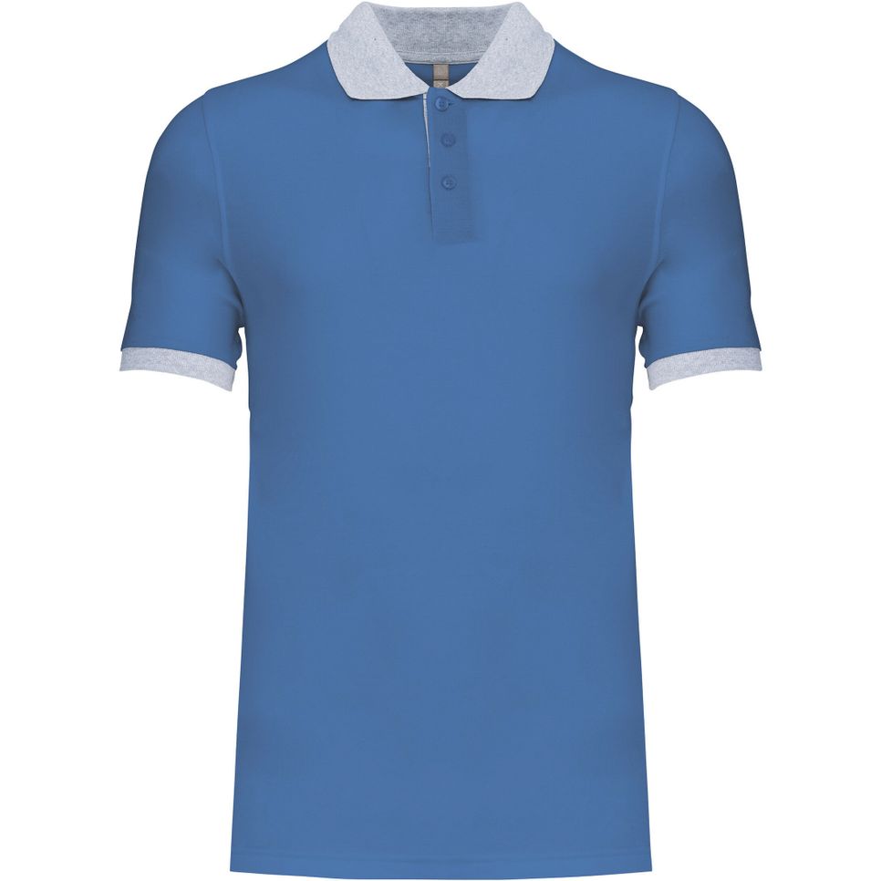 K258 - Polo piqué bicolore homme - light_royal_blue/oxford_grey
