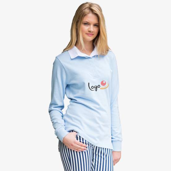Le Polo Rugby Femme en coton jersey lourd, avec coupe femme et col blanc, convient au port quotidien et à l’usage en équipe. Modèle personnalisable.