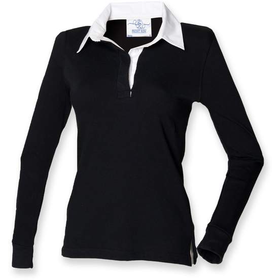 Le Polo Rugby Femme en coton jersey lourd, avec coupe femme et col blanc, convient au port quotidien et à l’usage en équipe. Modèle personnalisable.