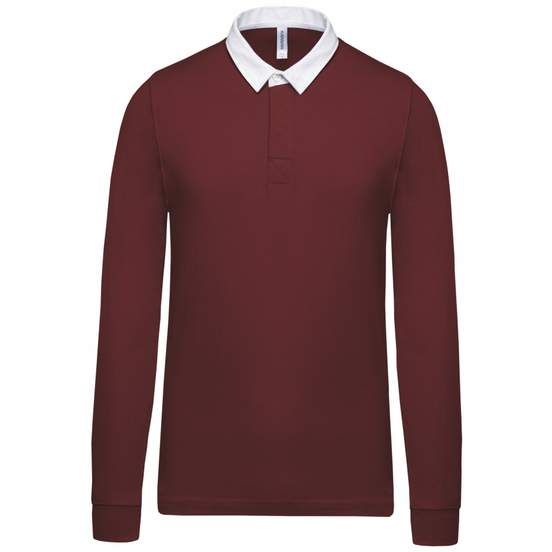 Le polo rugby en coton peigné pré-rétréci, avec col en coton sergé contrasté blanc (sauf coloris Red Dark Grey : col noir), patte 3 boutons, bande de propreté chevron intérieur col, poignets côtes 1x1 et fentes latérales. Compatible avec la personnalisation.