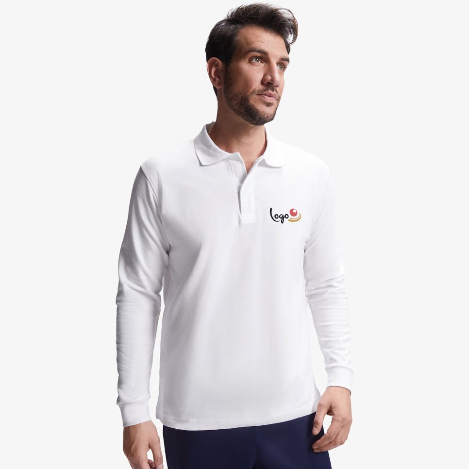Le polo de travail Rover l s à manches longues en coton piqué convient à un usage professionnel. Col et poignets en côtes 1x1, patte de fermeture par bande auto-agrippante, fentes latérales et étiquette détachable. Personnalisation possible.