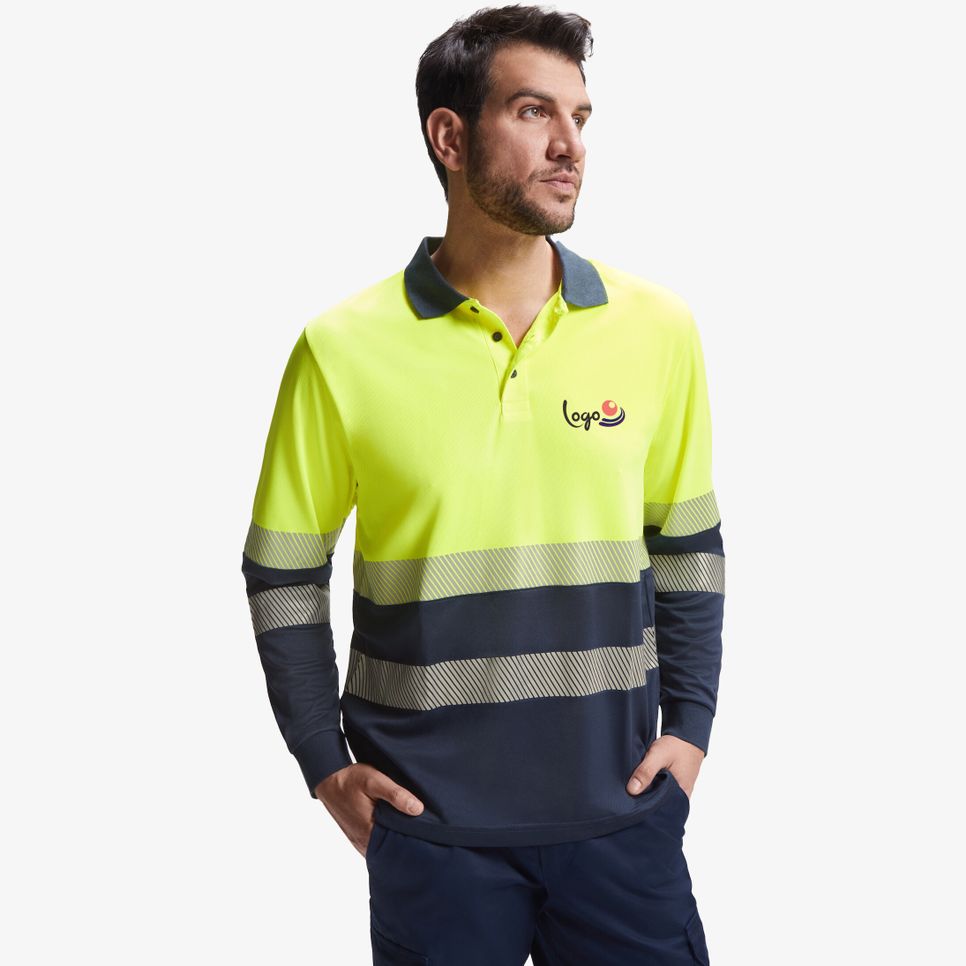 Le Vegas ls est un polo polyester haute visibilité à manches longues, avec bandes réfléchissantes segmentées et patte 3 boutons contrastés. Tissu anti-accroc, séchage facile, étiquette détachable, poche option. Personnalisation possible.
