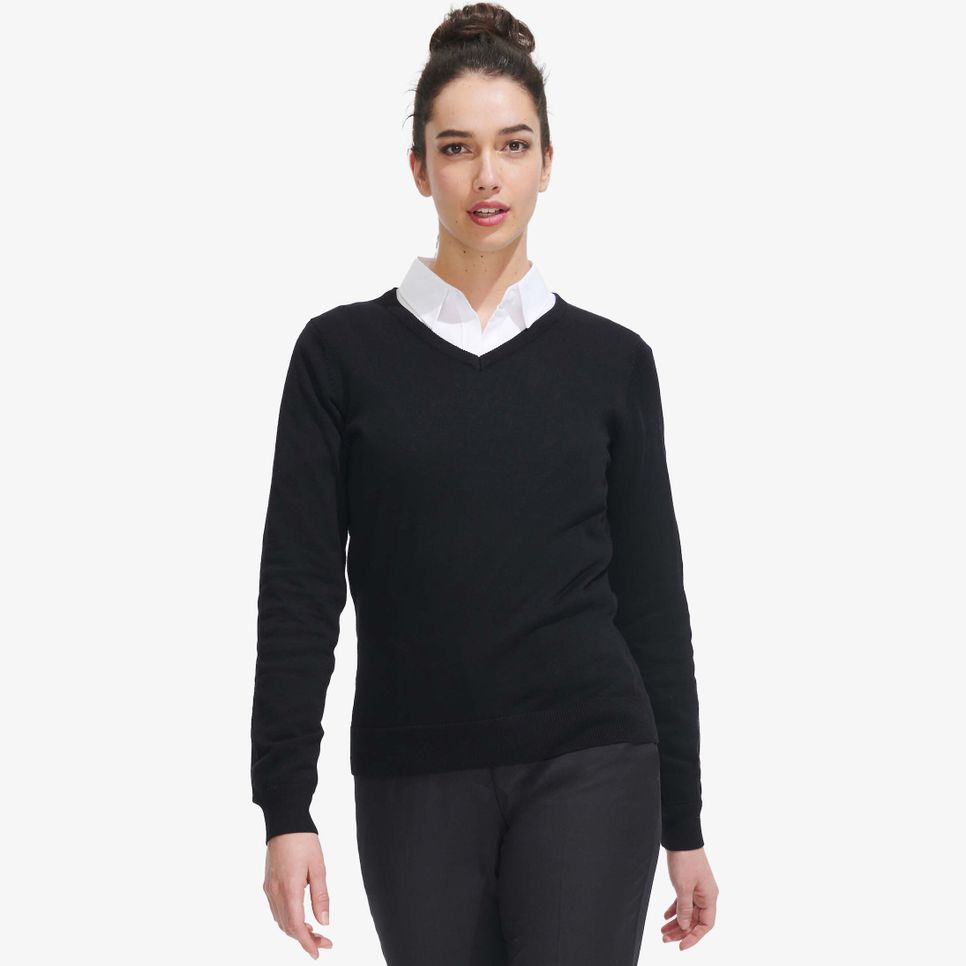 Le pull col V femme Galaxy Women convient aux usages quotidiens avec une coupe ajustée et des manches montées. Les finitions bord côte aux poignets et au bas apportent une tenue régulière. Article personnalisable.
