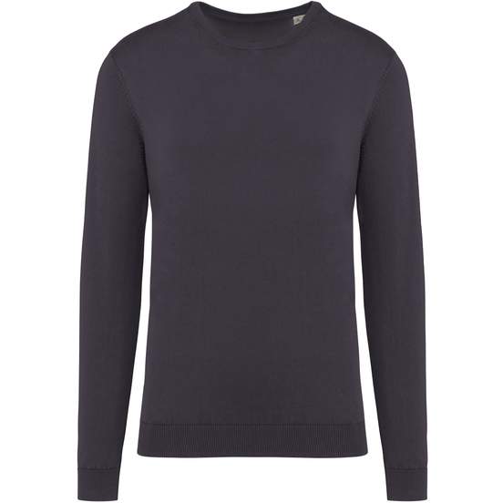 Pull à col rond pour homme. Coton peigné jauge 12. Coupe ajustée, col, poignets et bas de vêtement en côte 1x1. Bande de propreté en matière principale. Vêtement teint après montage : les couleurs peuvent légèrement varier. Tricoté en « Fully Fashion ». Composition : 100% coton biologique.